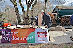 Wethouder Maarten Dijkshoorn was ook van de partij en aan de handigheid waarmee hij aan de slag ging was goed te zien dat hij een ervaren nestkastenbouwer is!