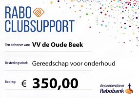 Op 11 oktober 2025 ontving onze vereniging een cheque ter waarde van 350 euro van de Rabo Clubsupport-actie. We zijn heel blij met dit bedrag en gaan het besteden aan het aanschaffen van elektrisch gereedschap.