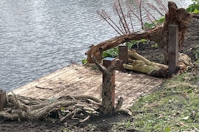 De vlonder is een feit. We kunnen nu allemaal water voor onze tuinen halen zonder risico op natte voeten. Tijdens de laatste algemene tuindag is door een aantal leden een vlonder gemaakt.