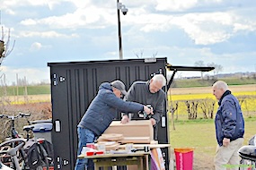Tijdens deze ochtend is goed gebruikgemaakt van zijn aanwezigheid, behalve het bouwen van nestkasten moest er ook nog een onthulling plaatsvinden.
